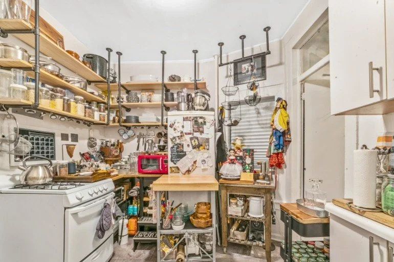 The living room is a very good size and leads to the expansive back yard. The bedroom has a queen bed currently. There are windows in all rooms including the kitchen and the bathroom, the kitchen has tons of customized built in storage and counter space.
